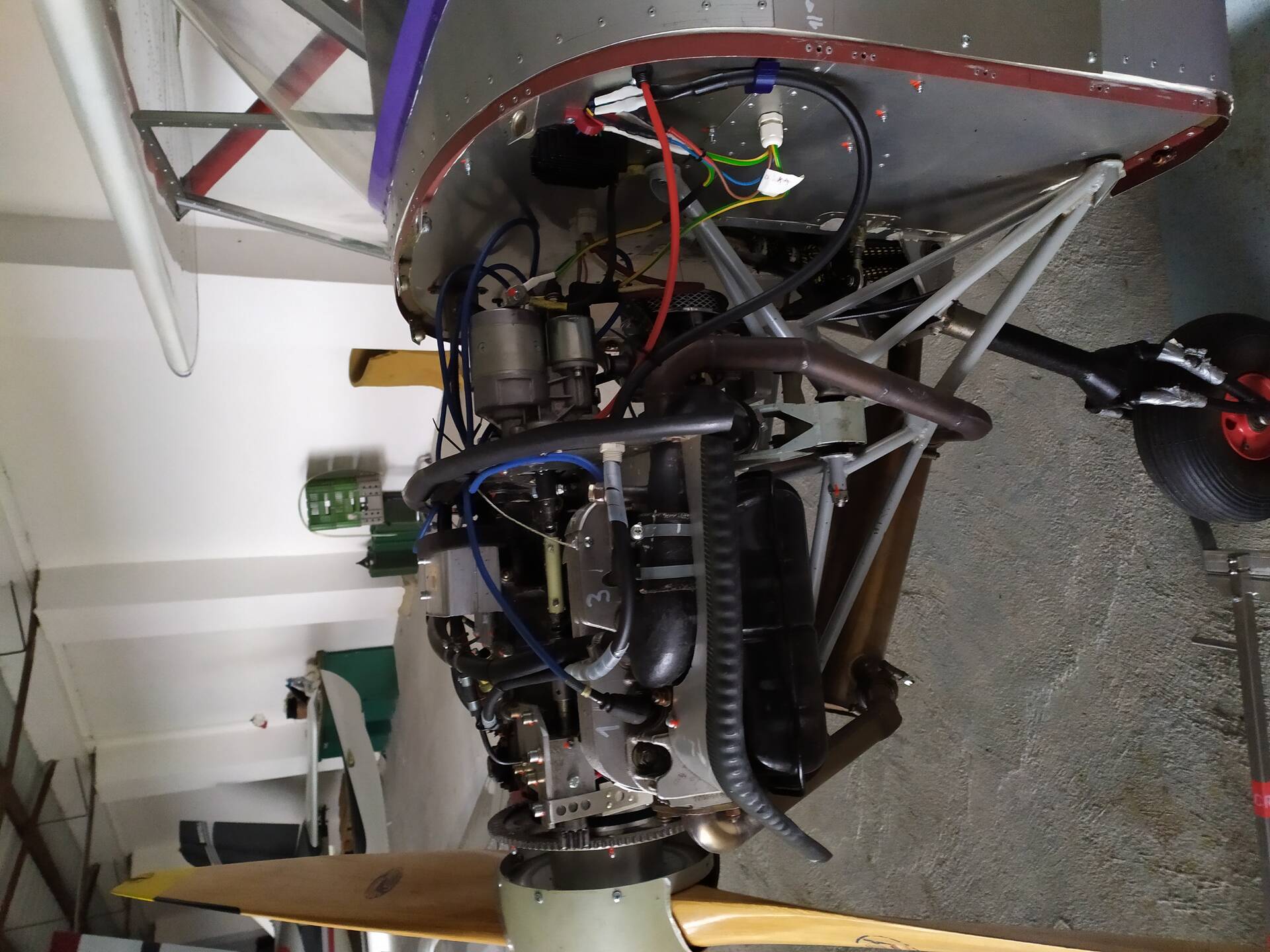 ovládání plynu - plynová páka, ovládání sytiče - páka sytiče, sada těsnění motoru, aditivum nahrazující olovo do benzinu, připojení olejového chladiče – 2 ks, klíč na seřízení karburátoru Stromberg, sada na opravu karburátoru, magneto – 3 ks, kabely na magneto – 3x, ozubený věnec startéru, olejový chladič, otáčkoměr, přepínač zapalování, alternátor nový – Kubota, usměrňovač k alternátoru, vrtuli levotočivou, vrtulový kužel, lože motoru, kompletní výfuk.